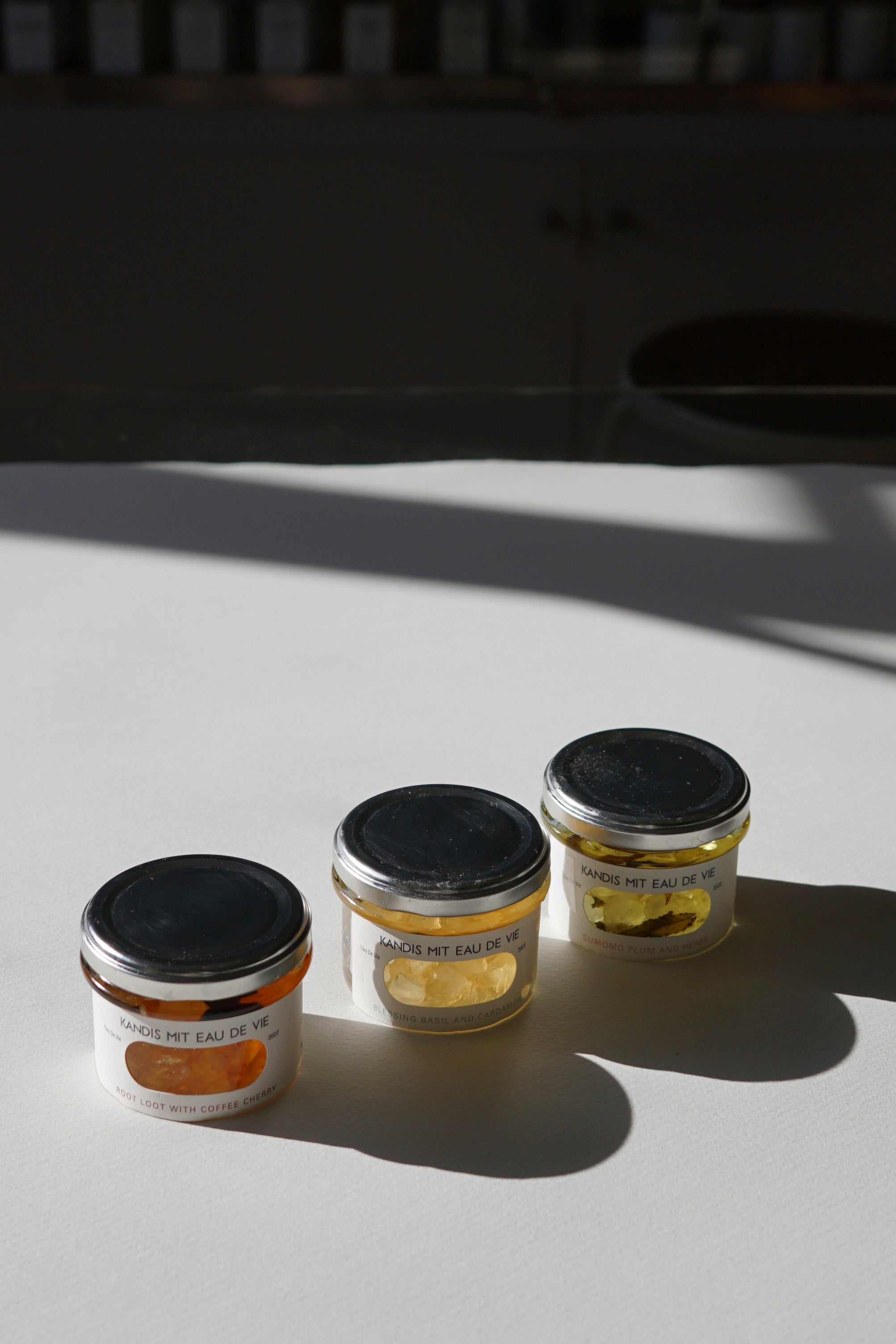 KANDIS is German for "glacial sugar," a beautiful jewel-like candy made of glacial sugar soaked in mitosaya's eau de vie syrup.