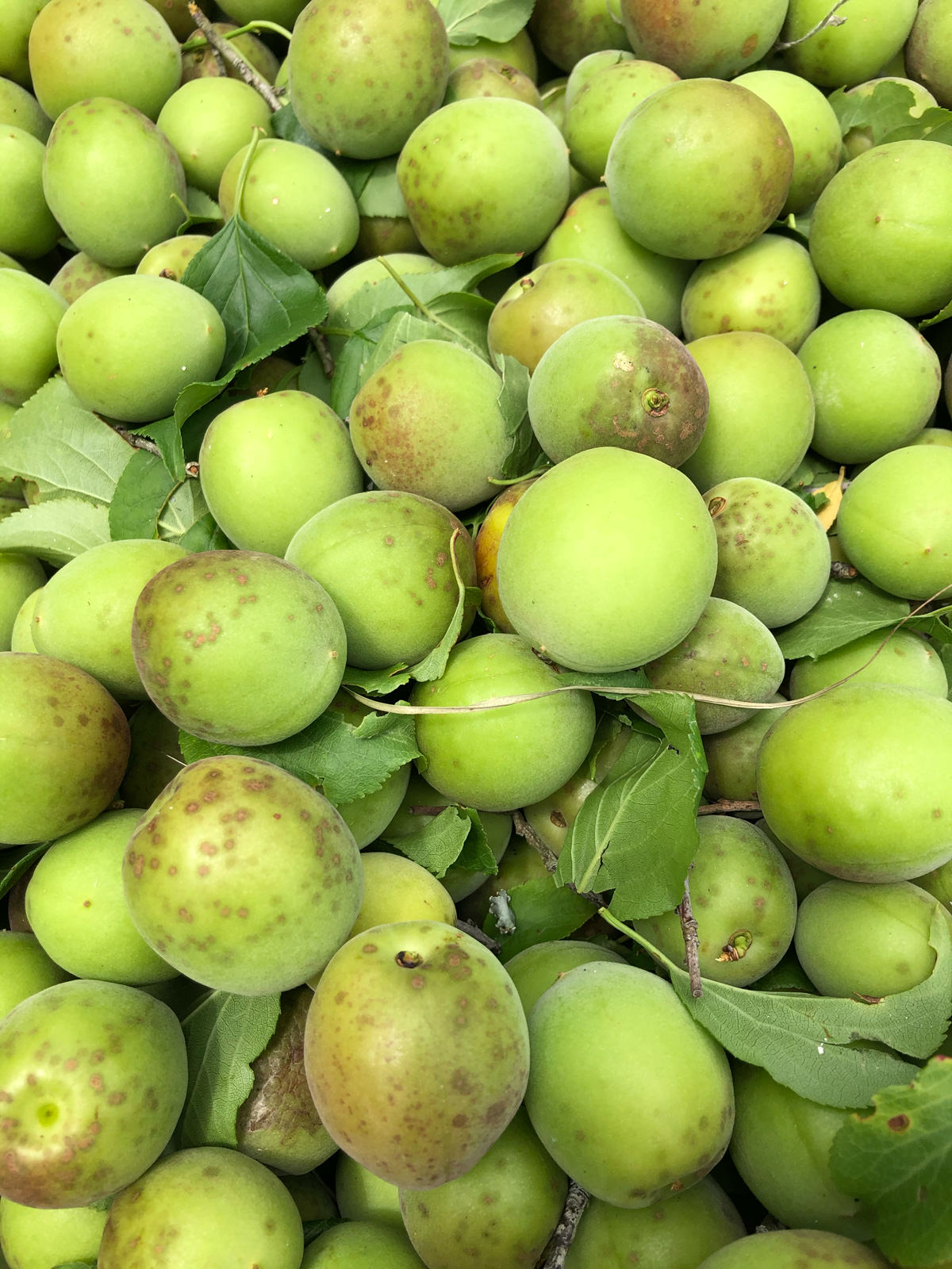 昨年の夏に収穫した梅を、約半年間蒸留所内のセラーでピクルス液に漬けて保管しました。硬かった実は甘酸っぱいピクルス液をたっぷりと含み、今にも破けそうなくらい。
