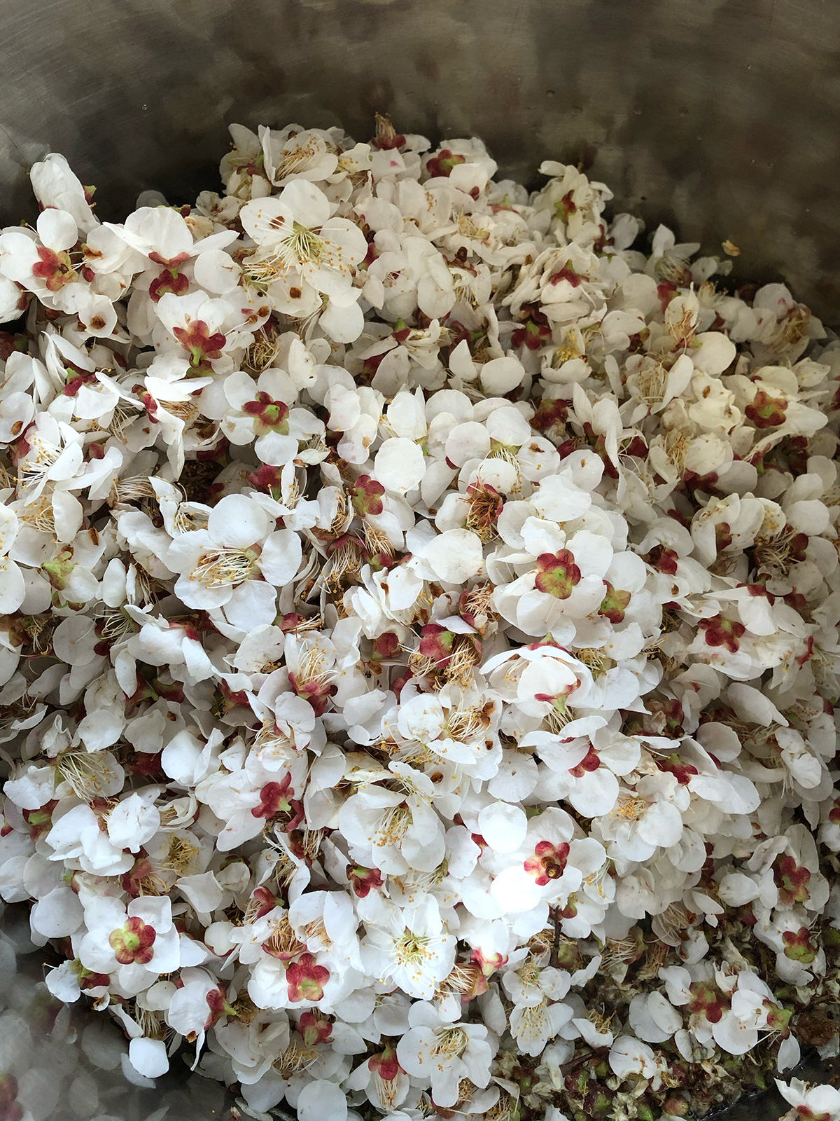 The flowers are soaked in a concentrated syrup and bottled slowly at a low temperature so as not to spoil the fragrance. Ume blossoms are also prized as medicinal herbs.