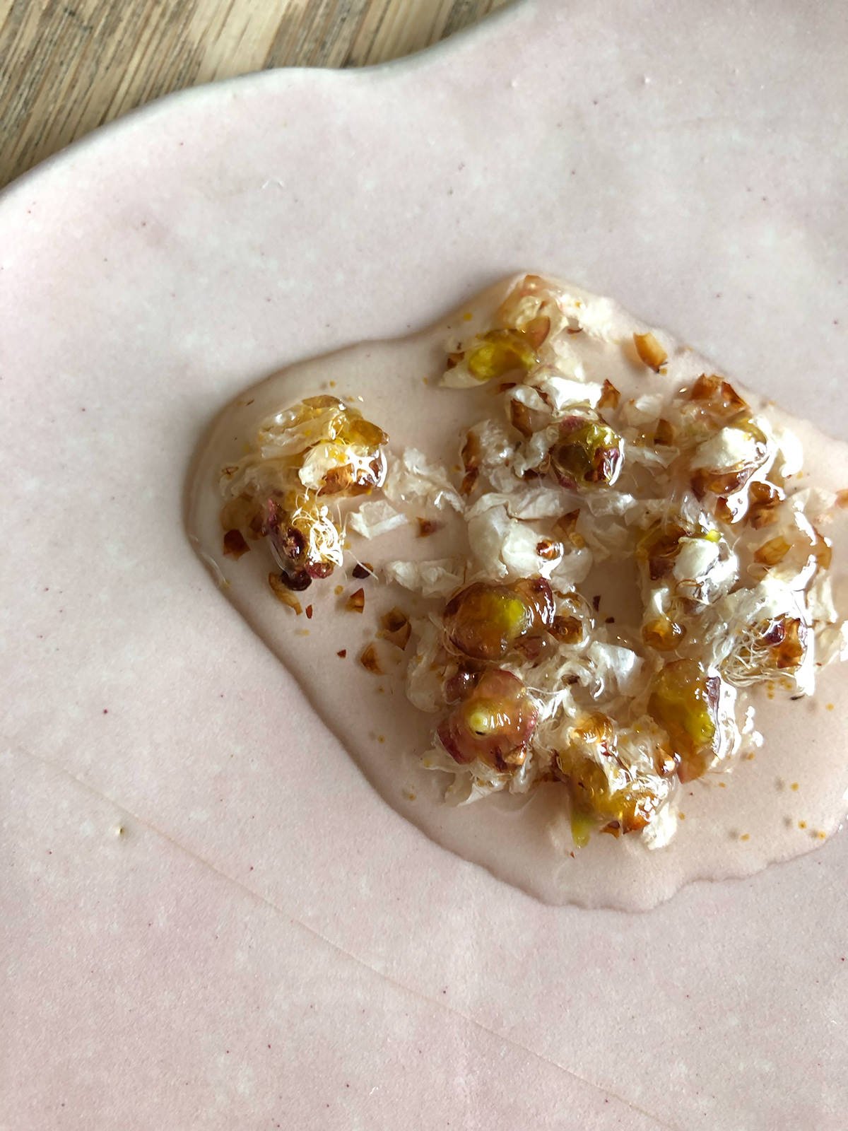 ほろ苦いですが、甘いシロップに包まれていますから和らぎます。ぜひ「花を食す」楽しみを、このシロップで味わってみてください。シロップのほうも、炭酸水やお湯で割って飲み物に。小さな瓶ですが、楽しみは色々です。