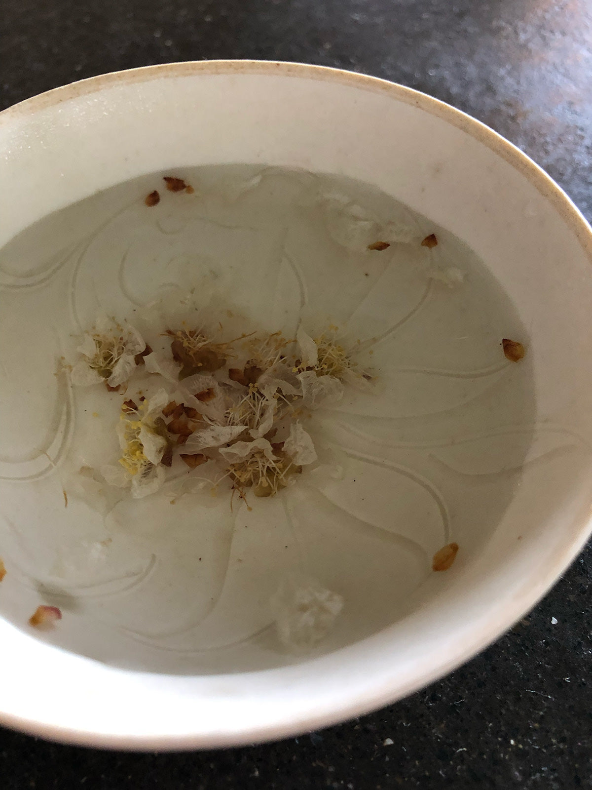 喉の乾きを癒したり、消化を助ける役割があるとも考えられています。梅の実の薬効は言わずもがなですが、花にも、姿を愛でるだけではない効能があるかと思うとこのあまーいシロップに浮かぶ花を噛みしめる楽しみが、すこし増すような気がしませんか。