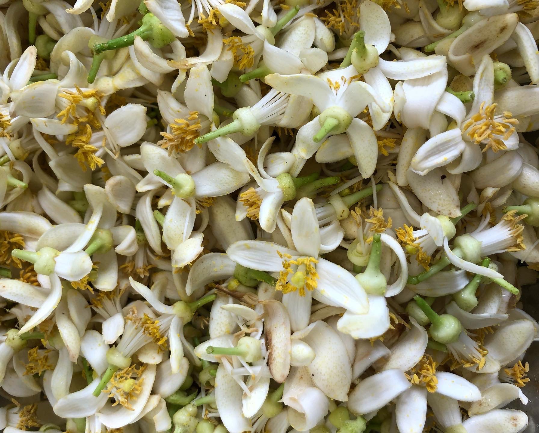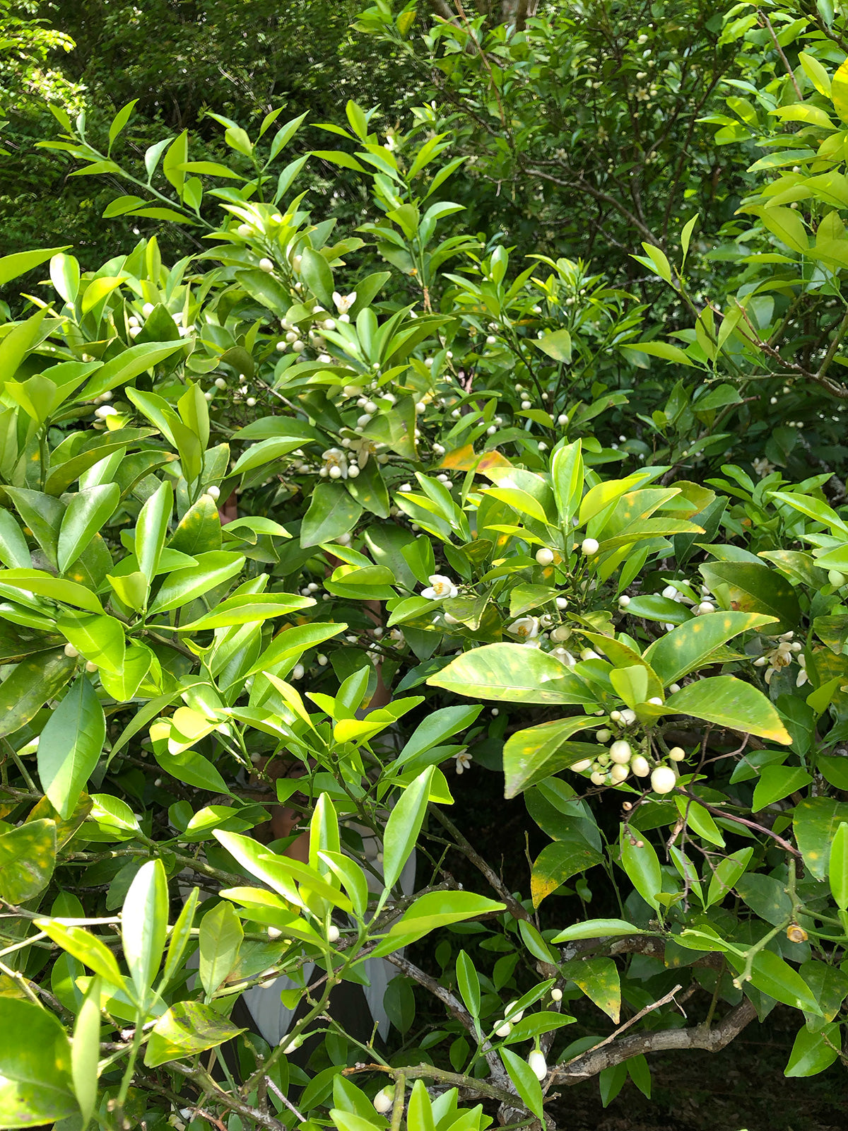 5月の風に、この庭では柑橘の花の香りがのってなんとも気持ちのよい匂いに深呼吸したくなります。 白い可憐な花をつけた木々にみんなで並び、ある日に花をたくさん摘みました。