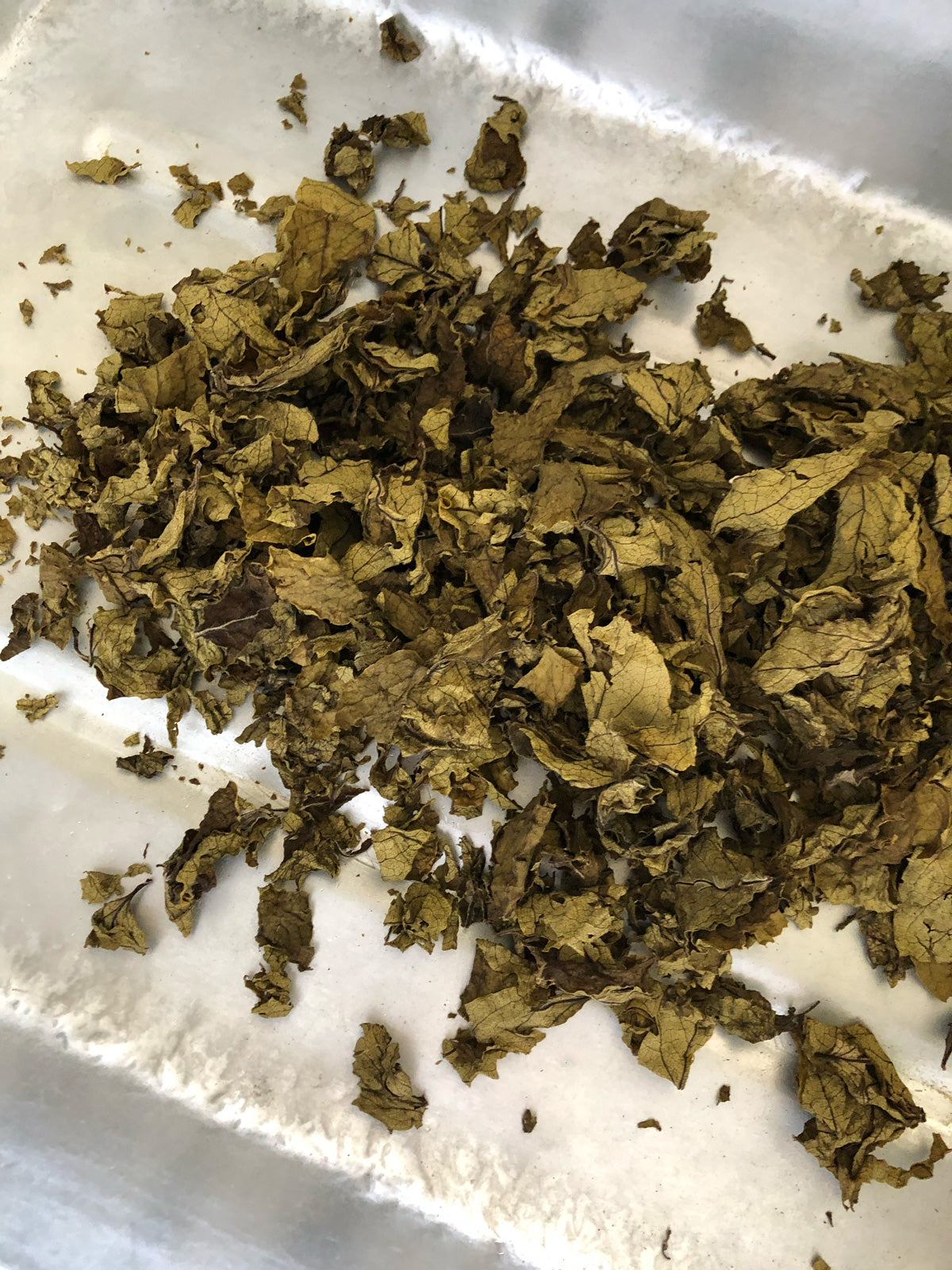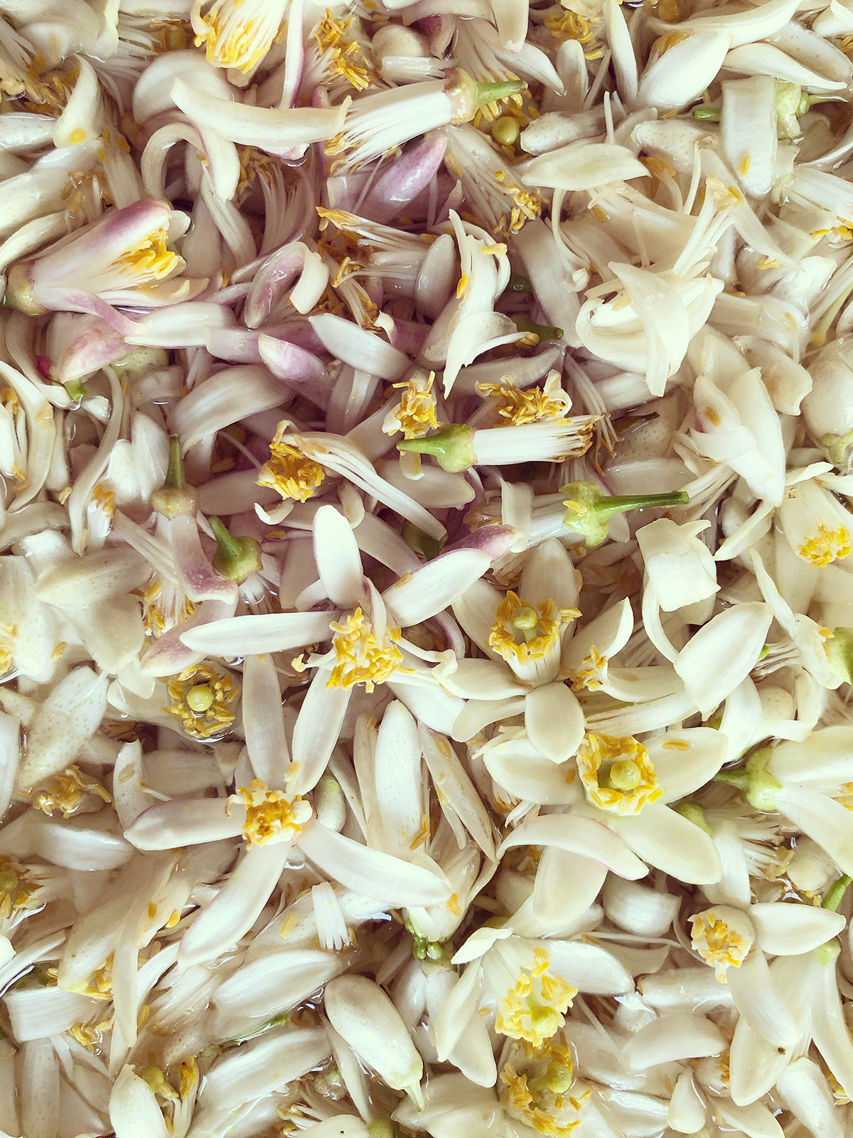春になるとまぶしいほどの鮮やかな黄緑の柔らかい葉を出す柿の木。mitosayaにも大きな木があって、その葉を摘んで発酵させてみると、その黄緑の色は失われたものの、美しい灰緑のお茶に仕上がりました。 合わせたのは庭の柑橘の花びらと、ジャスミンの花と柑橘の花の香りは似ていると発見したところからジャスミンティーを合わせるアイデアに至りました。