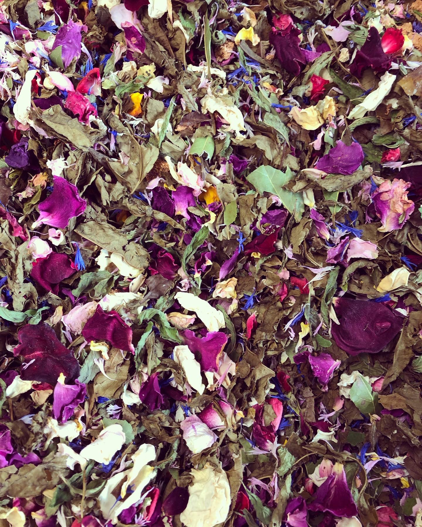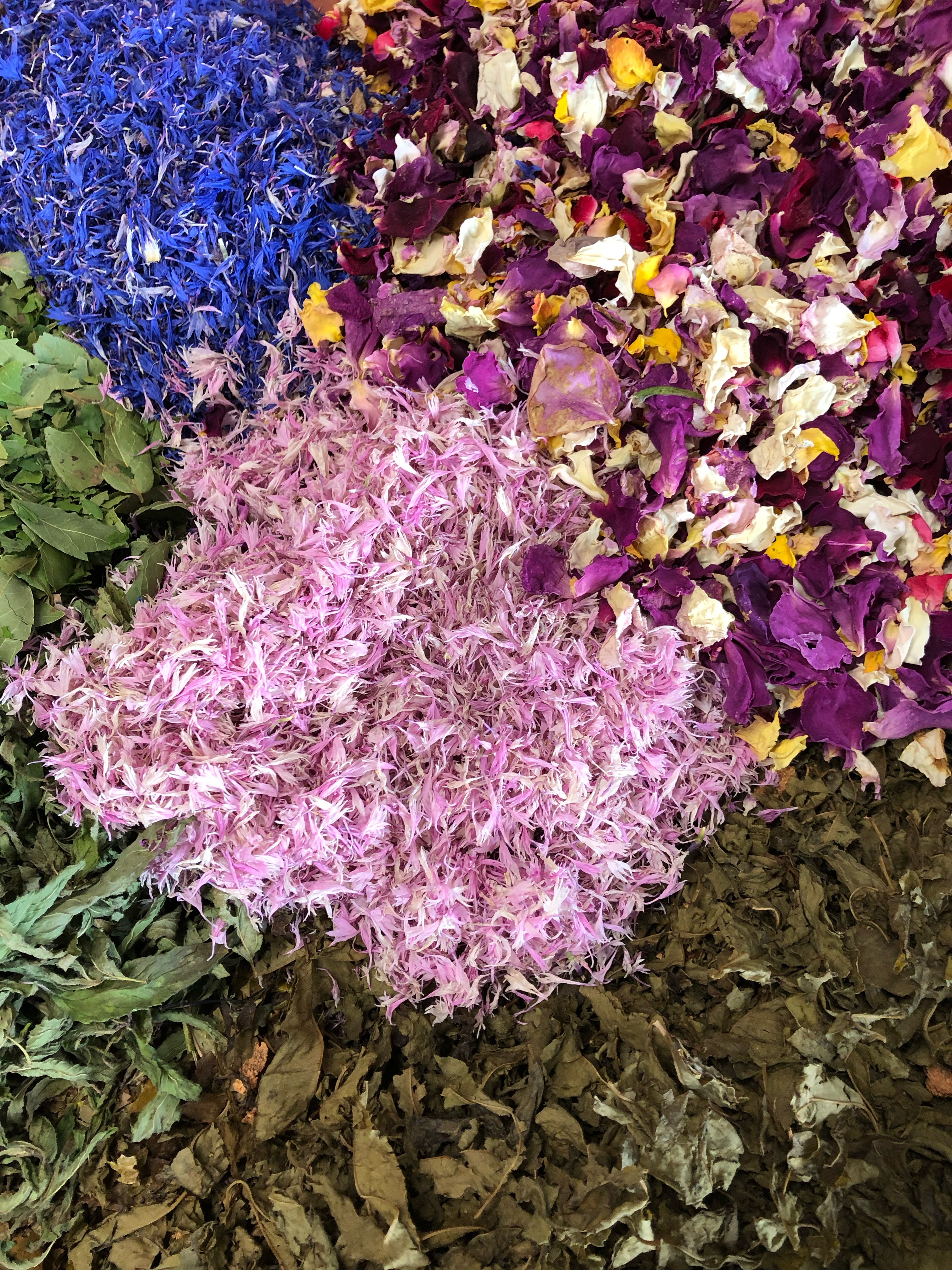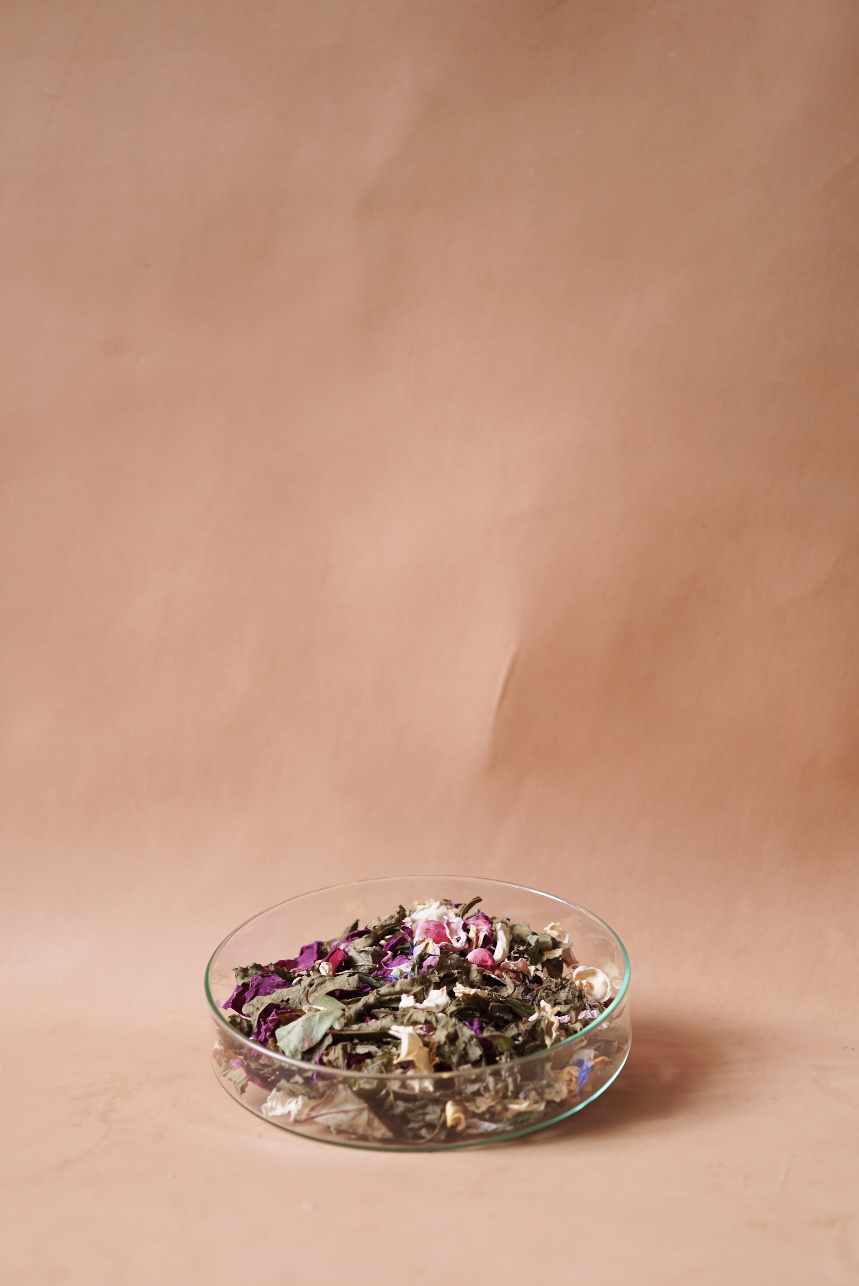 原材料:バラ(hanapotager/九十九里)、ミント、ローリエ、発酵桃の葉、茶の葉、花梨のパルプ(noma/Denmark)、矢車菊