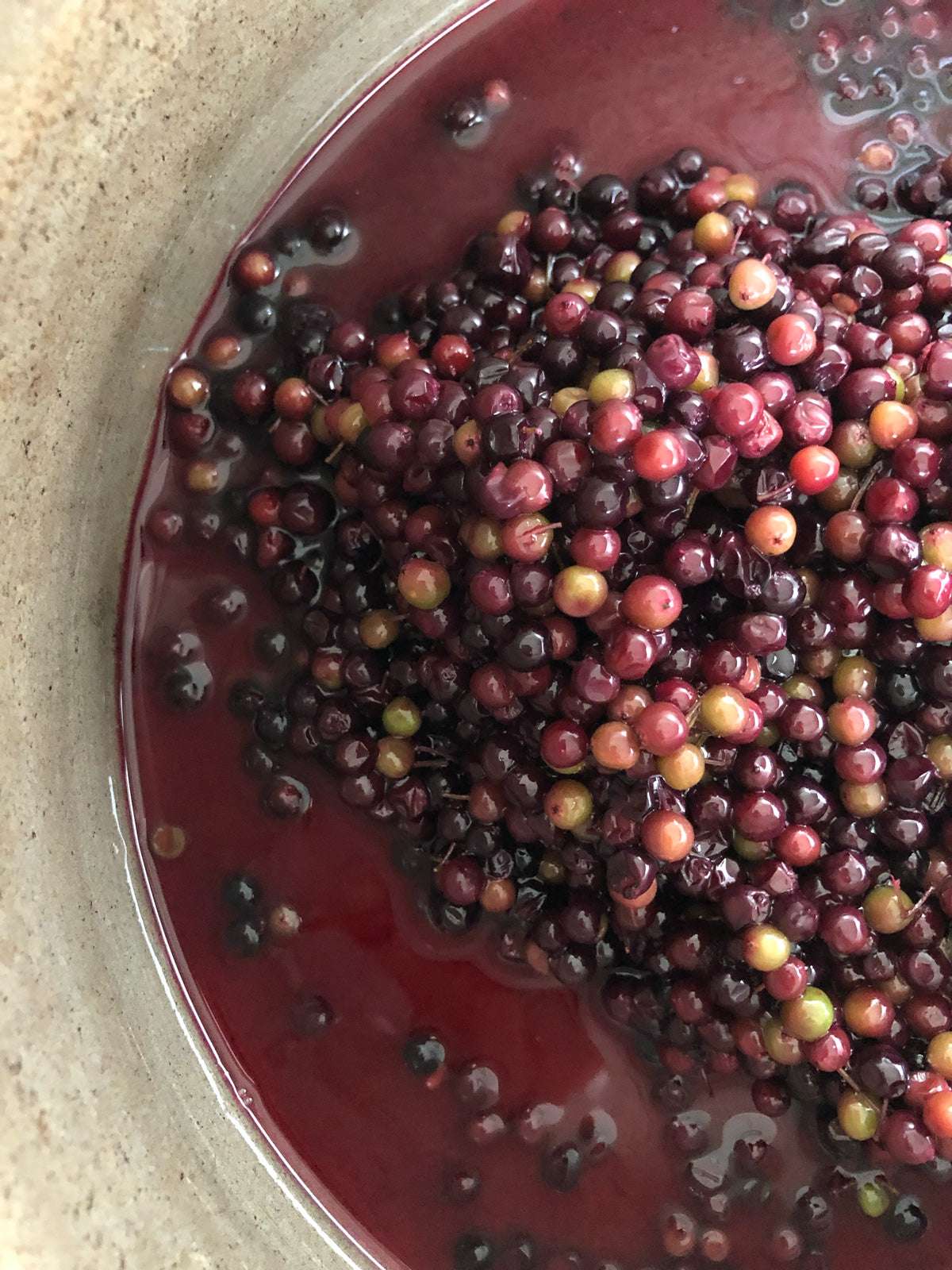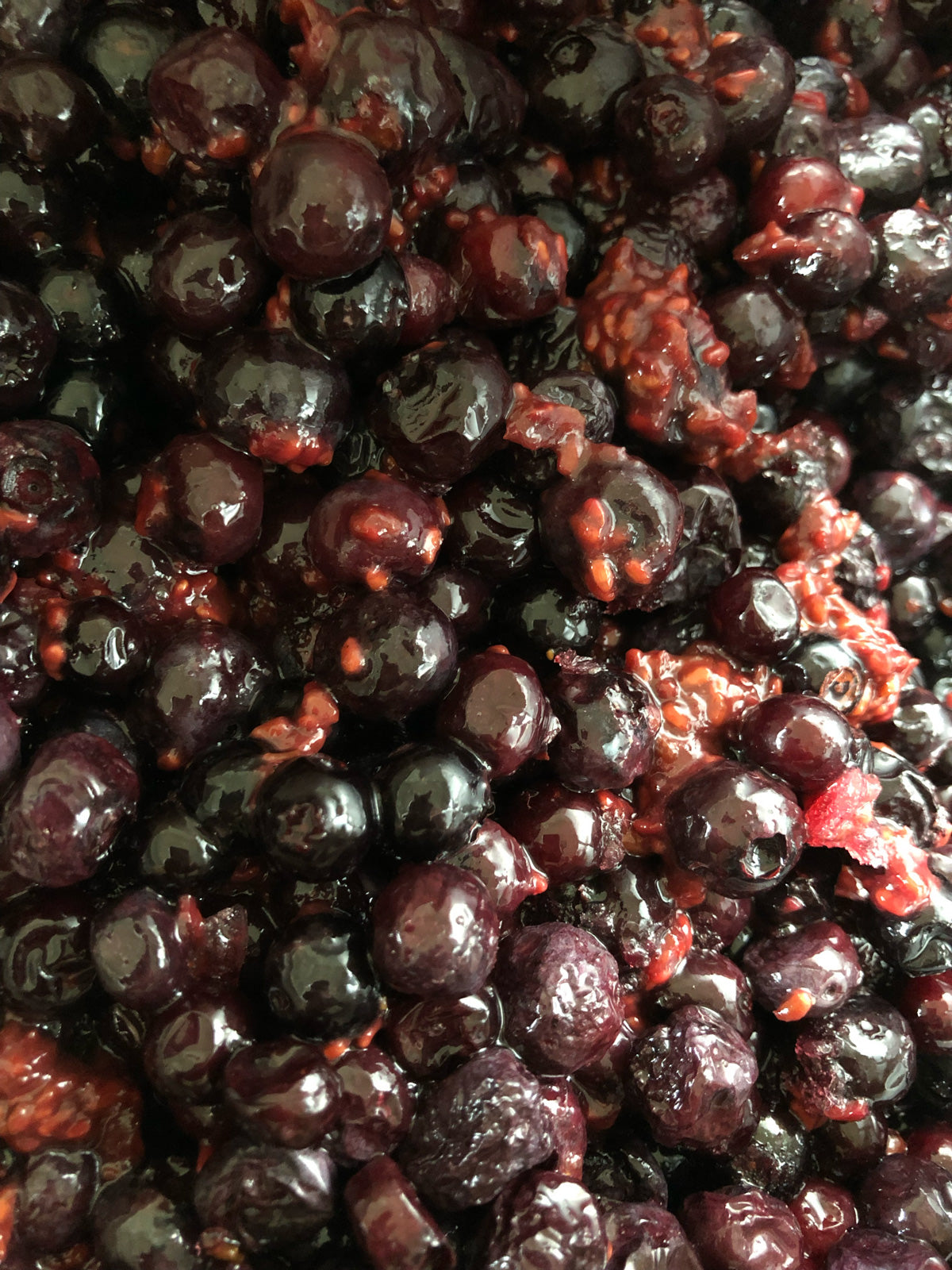 mitosayaの門を抜け、階段を上がったところで、ブルーベリーの木がお客様のお越しを出迎えます。今年はたくさんの実をつけました。夏休みの間中、私と娘でせっせと摘んだ実は、なんと、7キロにも及びました。これは製品にして、皆さんにお裾分けするしかない!と意気込んで作った初めてのブルーベリージャム。ただのジャムではちょっとつまらないから、いつもながらに少しの工夫。これまた庭で実ったエルダーベリーを加え、食感に種のかすかな変化を。ホエイと一緒に煮込んで、柔らかな甘酸っぱさを。
