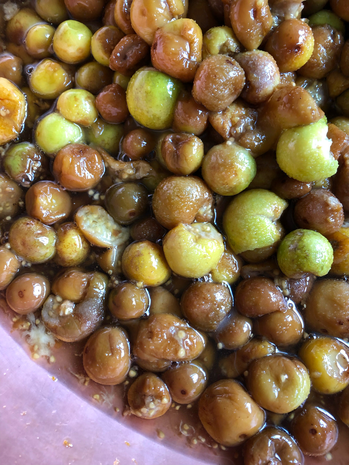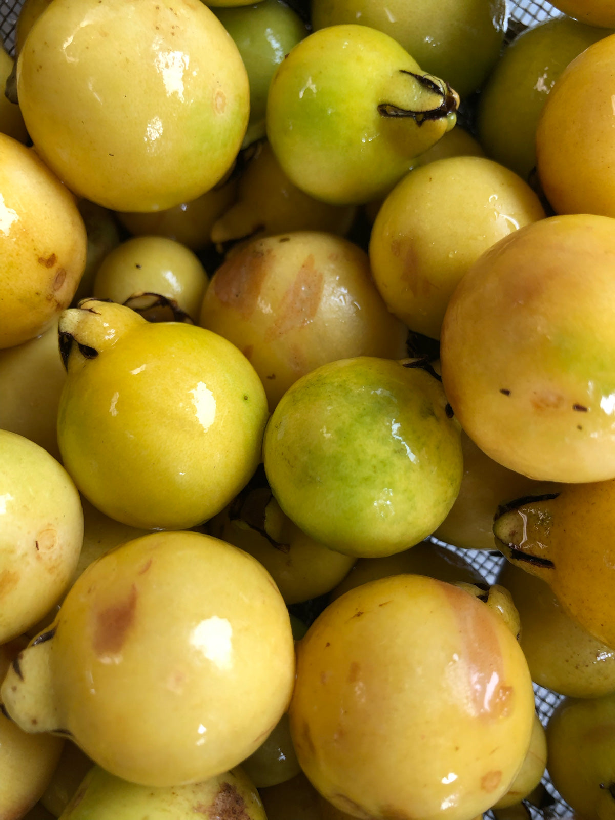 秋の気配を感じると同時に、グアバの実が温室の中で次々に実るようになります。それが毎日ぽとぽとと落ちるのですが、まあその様子は愉快というほど勢いよく、床一面にばらまかれてしまうので、毎日チェックしては、きれいな実を選び取り集めて拾います。