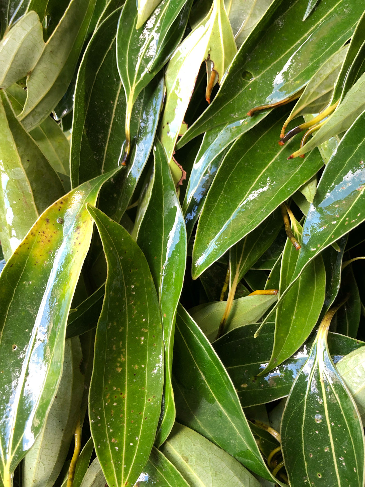 原材料:柿の葉、茶の葉、シナモンリーフ、黒文字の葉、枝、肉桂の根、葛の花、萩の花
