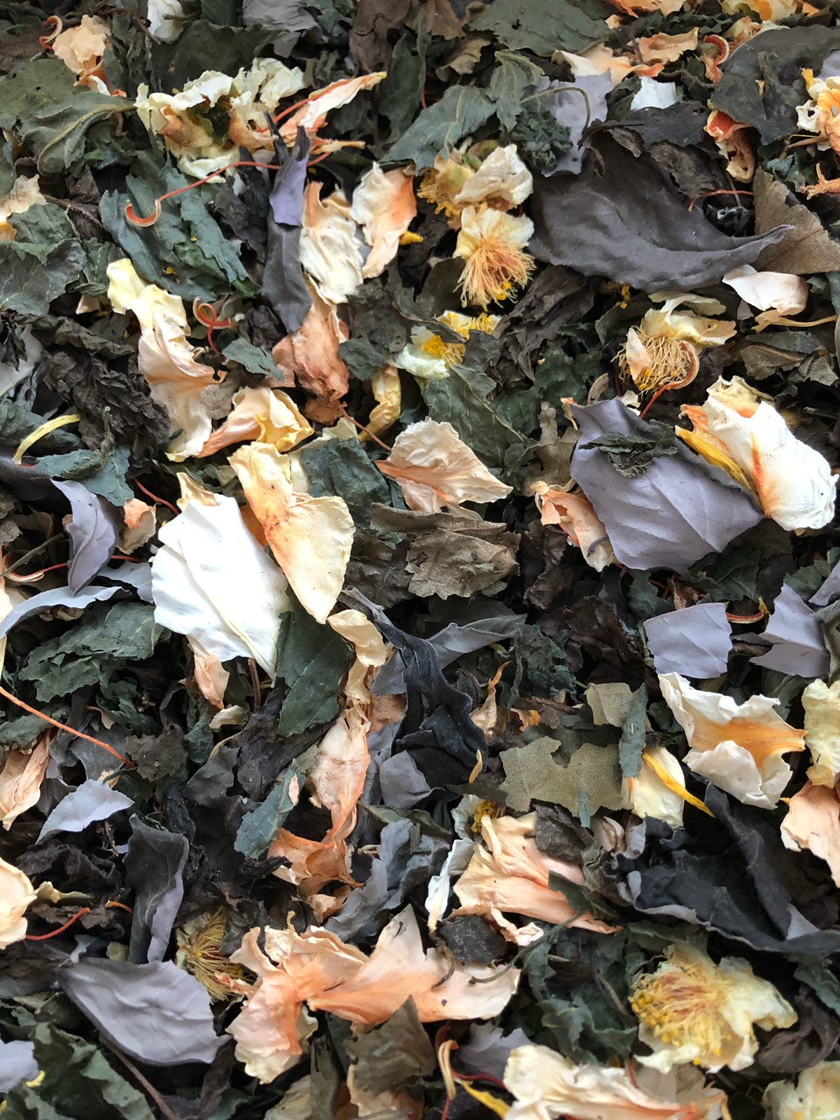 Ingredients: red shiso, green shiso, mulberry leaf, hamagou, ginger flower, tea flower