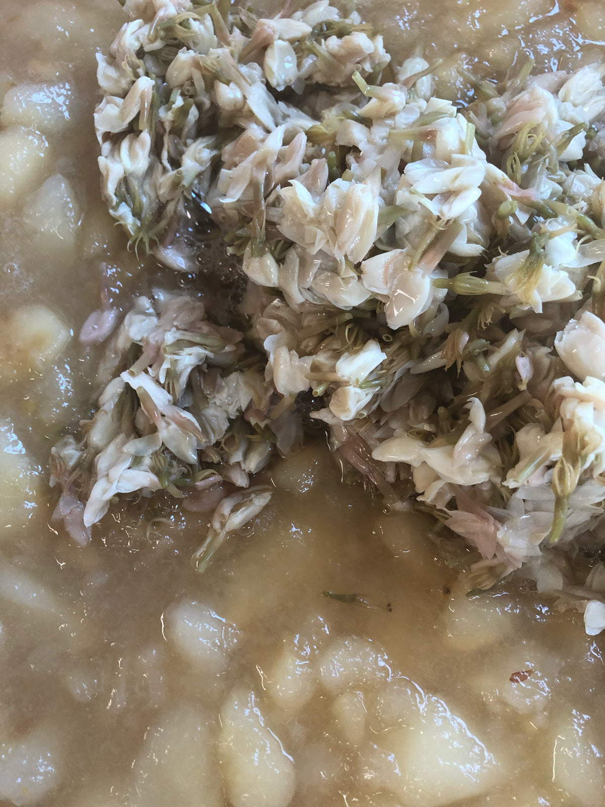 新潟の阿部農園さんから今年も見事なル レクチエが届きました。お酒の仕込みからすかさず確保し、ジャムの仕込みが始まりました。果肉を残した自然な形。庭のカブスの香りの良い果汁をたっぷりと加えました。静岡産の無農薬のジャスミンの花が、心地よい食感と華やかな香りを添えています。