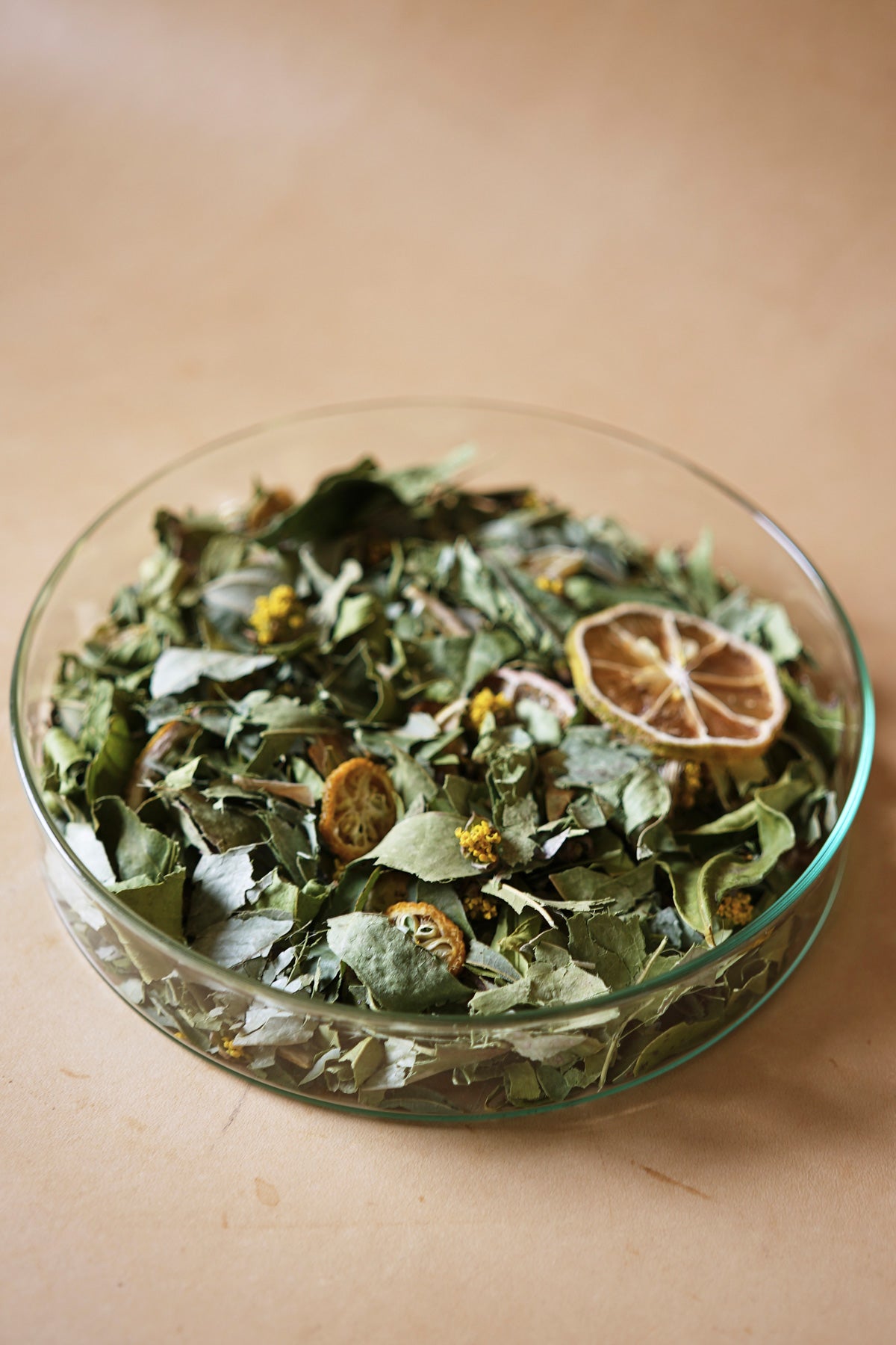 原材料:テンダイウヤク、グアバの葉、レモンの葉、レモン、金柑、シークワサー、サンシュユの花