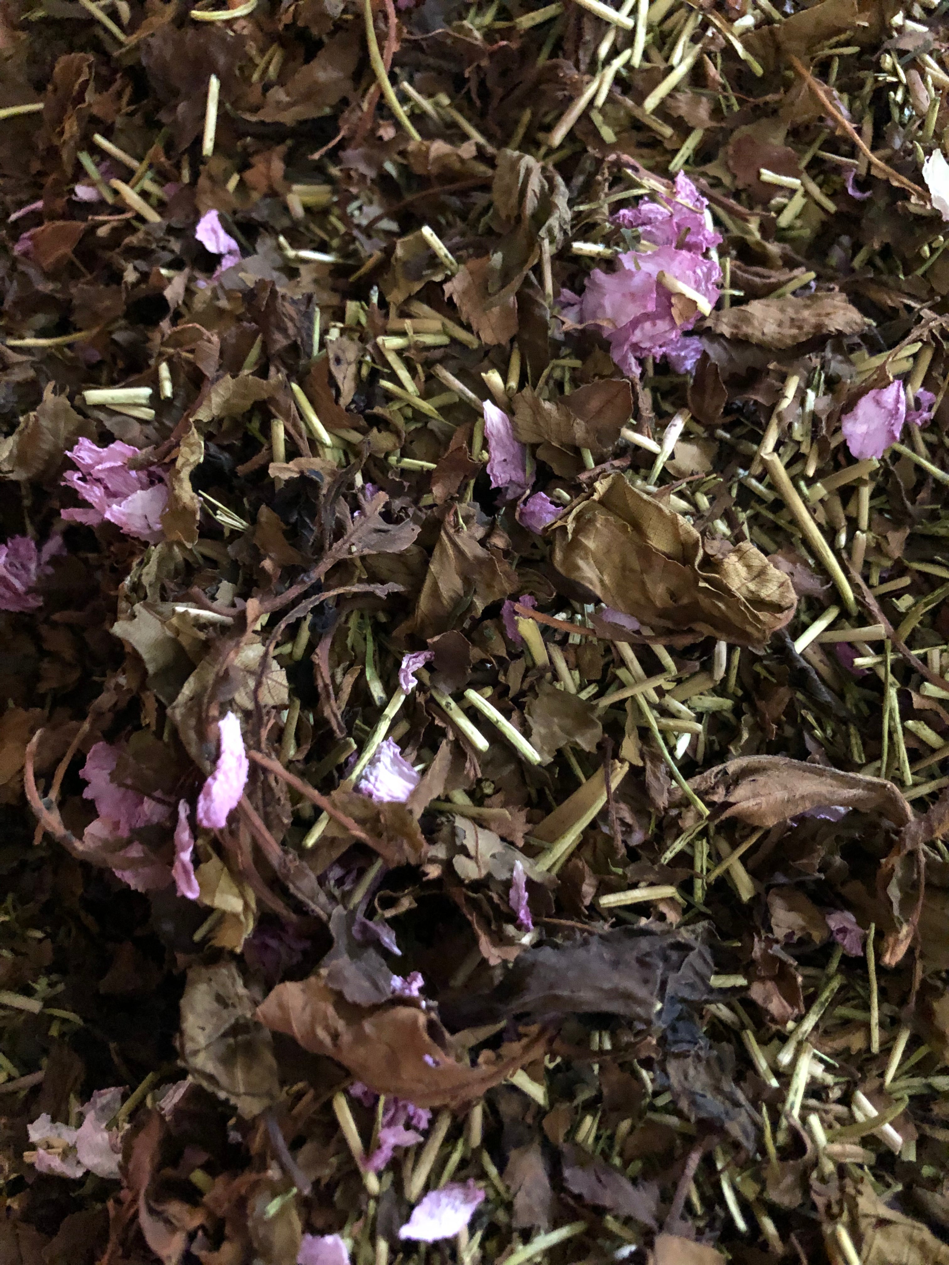原材料:鬼の白骨(茎茶/狭山・奥富園)、桜の発酵茶、桜の花