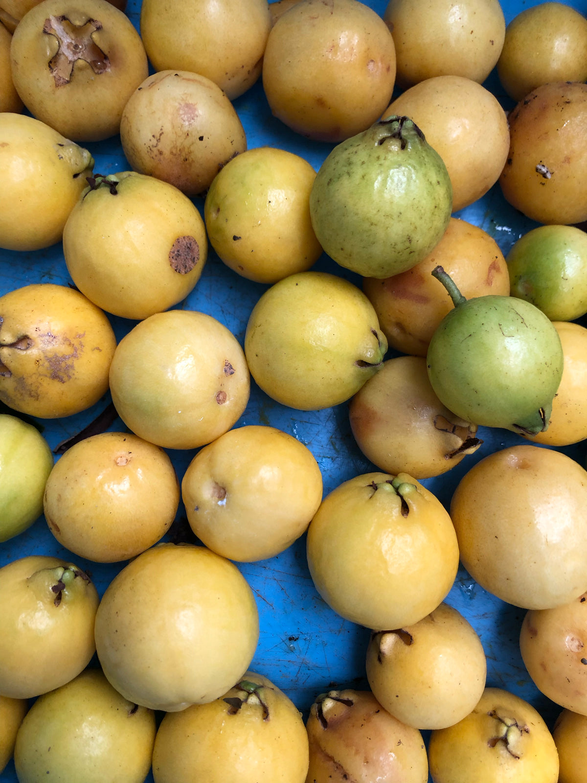 秋になると鈴なりになるグアバの黄色い実。毎日欠かさず熟したものを採っては集めて、7キロになりました。 蒸留機が新しくなり、いよいよもろみも各種出てくるというタイミングで御子神くんから渡されたのが、石垣島のパイナップルの蒸留もろみ。グアバとの組み合わせは良さそうということでこんなジャムができあがりました。