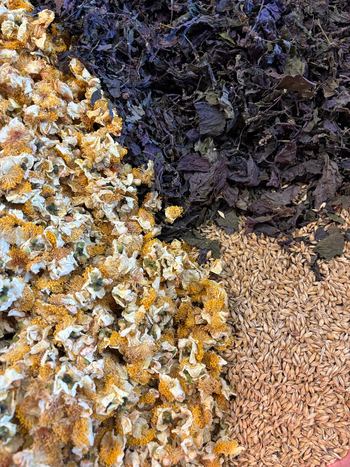 Clean bitterness from tea flowers, the vivid aroma of red shiso, and gentle sweetness from roasted six-row barley.