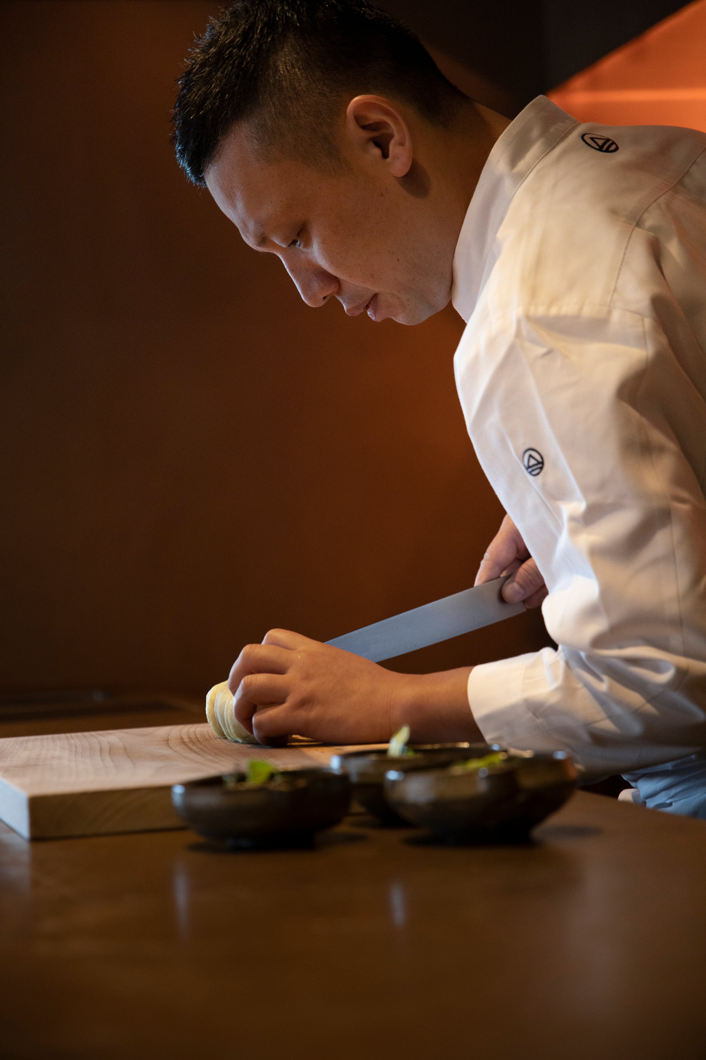 2018年に開業した南青山にある日本料理店です。京都で習得した日本料理の技法と海外で磨いた知見と感性をもって、郷土である瀬戸内海と向き合い、自らのルーツである香川県の離島「手島」を目指しています。