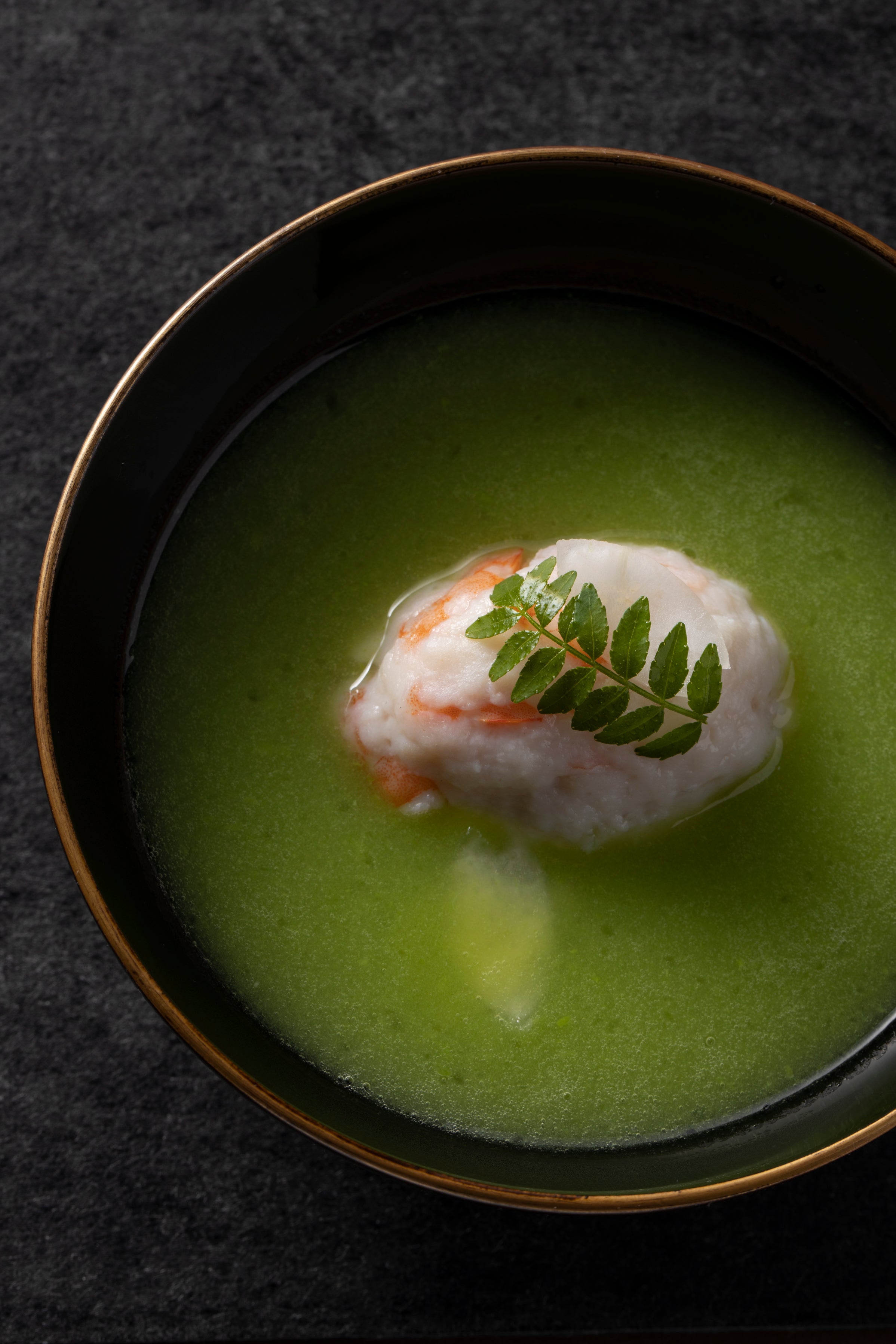 Nimono soup: surinagashi with chrysanthemum and lobster dumpling